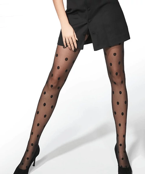 Imádjuk a pöttyöset! Adrian Pauline mintás fekete harisnya. Finom szálú, kellemesen selymes hatású. Orrerősítéssel és lépésbetét nélkül. Minőségi anyagokból Európában készült.