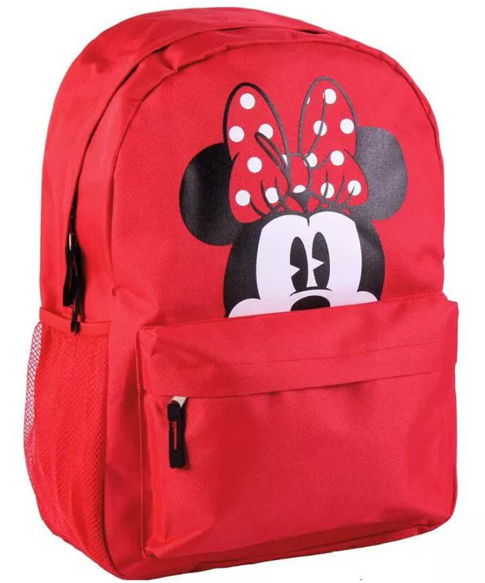 Disney Minnie egér hátizsák iskolatáska. Egy nagy fiókos, elől egy kisebb cippes fiók, oldalt hálós kulacstartó. Párnázott vállpánt. mag:41x30x14 cm