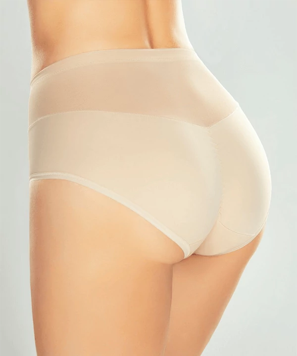 Eldar Vitalia Plus magasderekú alakformáló bugyi a Comfort kollekcióból. A bugyi felső része szoros, átlátszó betétes. Eleje dupla, microfibra anyagú, fenékrésze húzott, felemeli a feneket. A szélek lapos gumiszegéllyel varrottak. 17% elastán, 80% polyamid, Kiváló minőségű európai termék.