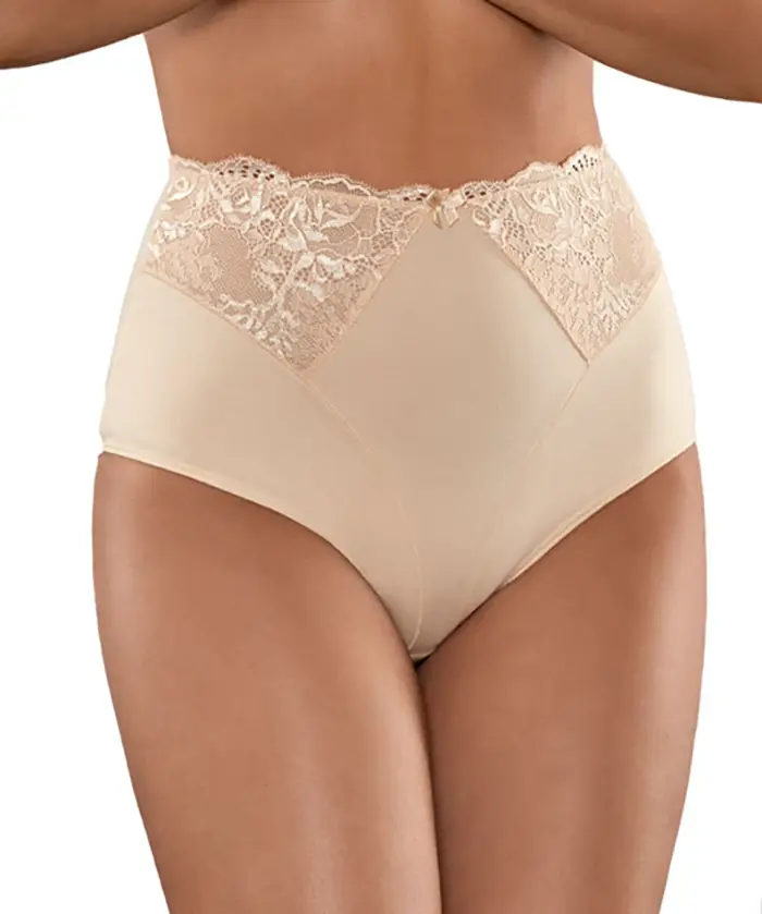 Babell magas derekú bugyi enyhe alakformáló hatással. Magas pamut tartalommal, csipke betéttel. Laposabb hasat és derekat nyújt viselőjének. Kiváló minőségű európai termék.