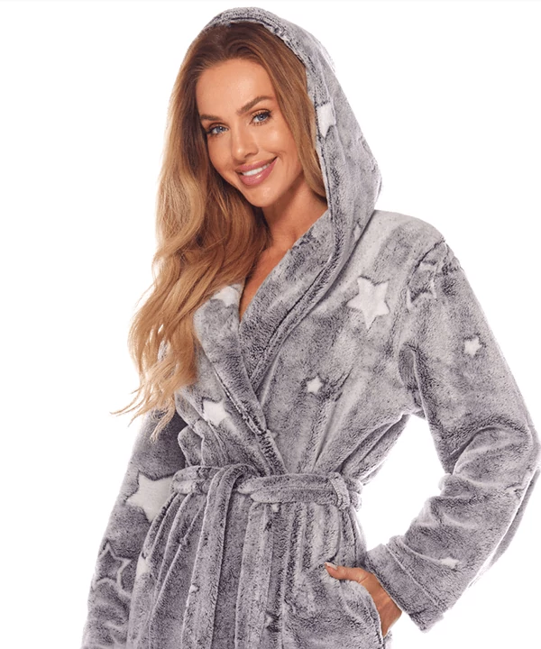 Exkluzív pihe puha női wellsoft hosszú női köntös szürke csillagos