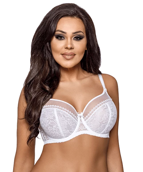 Extra nagy méretű melltartó telt keblű hölgyeknek! Pille könnyű, 2 rétegű csodaszép csipke és tüll, magasan záródó kosarak, strasszokkal. Széles váll- és hátpánttal, kettős horogkapoccsal, ami 3 fokozatban állítható. Minőségi, finom fehérnemű Európából. Dobozban szállítjuk!