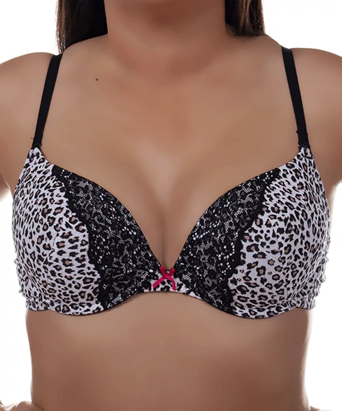Lemila ocelot mintás melltartó szuper push up szivacsbetéttel Levehető, állítható pántos. Kettős horogkapoccsal, mely három fokozatban állítható. Mell alatti körméret:61-67 cm