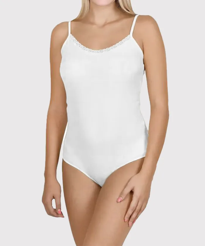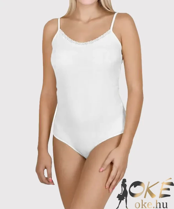 Lemila pamut body. Dekoltázson diszkrét csipke, állítható vállpánt, alul patentos. termék mellbősége:62-67 cm, teljes hossza:63-68 cm, derékbősége:54-59 cm