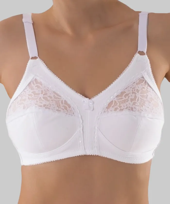Merevítő nélküli Lemila 16170 pamut melltartó. Kosaraiban nincsenek bevarrott merevítők. Speciálisan kialakított szabása stabilan tartja a nagy melleket is. Kosár oldalán bevarrt merevítés. Nem látszik át. Kényelmes, rugalmas körben a pántja. Rávarrt vállpántos.