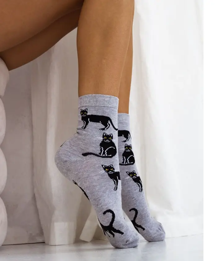Fekete macskás női pamut zokni. 75% pamut tartalommal. Kiváló minőségű termék.