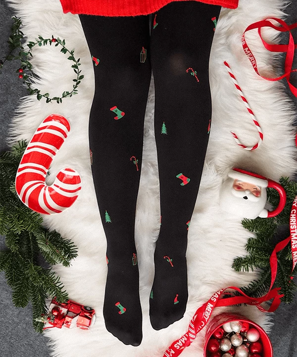 Gabriella Christmas tights közepesen vastag női harisnyanadrág. Erős szálú 60 denes, mikrofibra anyagú, combrészig 3D karácsonyi mintás, Elől-hátul 1 varrásos. I. osztályú minőség Európából