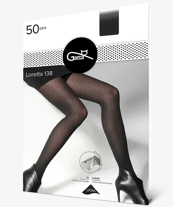 Hideg időben is csini harisnyában! Különleges puhaságú Gatta Loretta 50 denes mintás harisnyanadrág. Erős szálú, sűrű szövésű, rugalmas mikroszálas anyagú, 3D hatású dekoratív mintával. Elől-hátul 1 varrásos, kis betéttel. I. osztályú Oeko-Tex Eu. minőségű