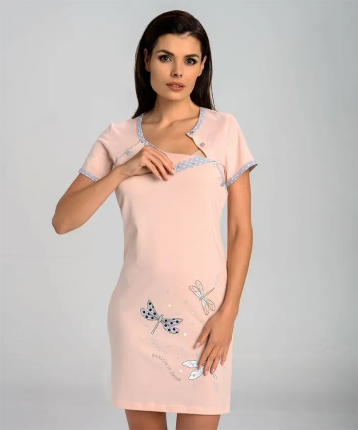 Kismama szoptatós hálóing. Praktikus patentolással a kellemesebb etetéshez. mellbőség:90 cm, hossz:90 cm, Kíváló minőségű pamut termék