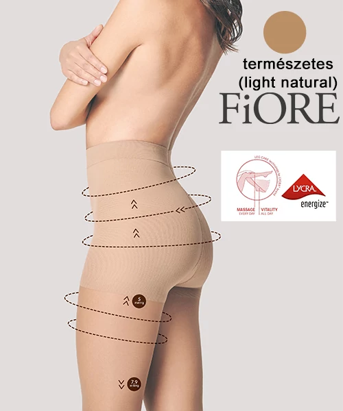 Nagy méretű Fiore Comfort karcsúsító és kompressziós vékony harisnyanadrág. 5-7,9 mm Hg nyomással segíti a helyes vérkeringést, a duzzadt, fáradt láb enyhülését. Antibakteriális hatású az ezüst ionos technológiának köszönhetően. 5-ös méret fenékbetétes. Made in Eu.