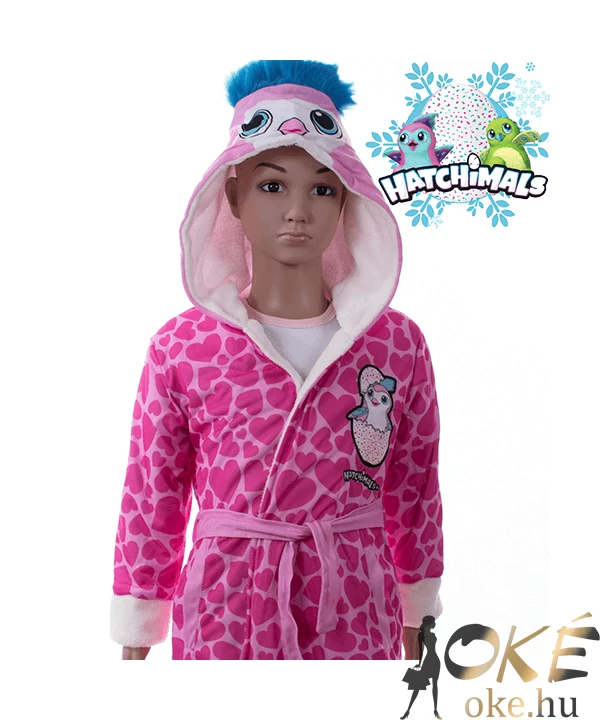 A nagy sikerű Hatchimals tojás után itt van a Hatchimals gyerek köntös, ami teljesen elbűvöl anyukát gyerkőcöt egyaránt. Kívül szívecskés nyomott mintás, mellrészen hímzett, a belseje pihe puha wellsoft anyag. Kapucnis, 2 bevarrt zsebbel és övvel. méretek: mell:62-65 cm, hossz:51 cm,