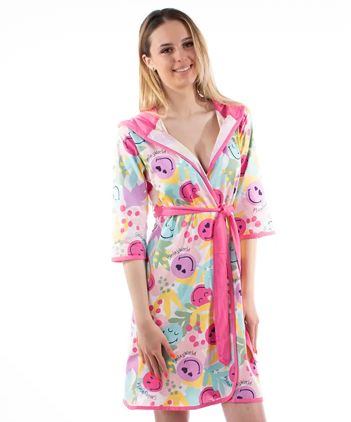 Puha pamut kismama köntös, nemcsak kismamáknak. Kiváló választás várandós és szoptatós anyukáknak, mert a 2 magasságban rávarrt övbujtatója lehetővé teszi, hogy mell alatt vagy szülés után derékban legyen megköthető. 2 oldalzsebbel. mellbőség:108 cm, hossz:95 cm, 100% finom pamut,