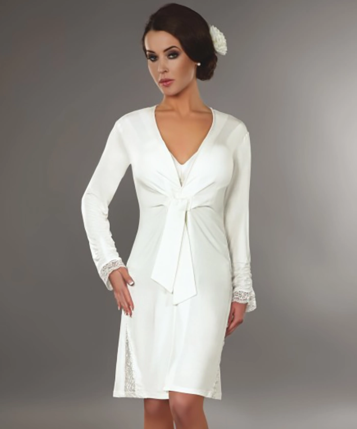 Meglepően szép Livia Corsetti Lavinia vékony női köntös. Pamut hatású, kellemes pasztell színű, ujján és alján szép csipkével, rávarrt megkötővel. 94 % rugalmas viszkóz anyagú Dobozban szállítjuk!