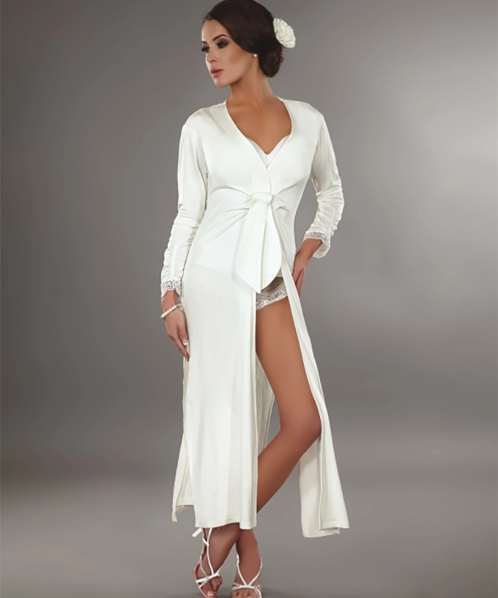 Meglepően szép Livia Corsetti Reli vékony hosszú női köntös. Pamut hatású, kellemes pasztell színű, húzott ujján és alján szép csipkével, rávarrt megkötővel. 94 % rugalmas viszkóz anyagú. Dobozban szállítjuk!