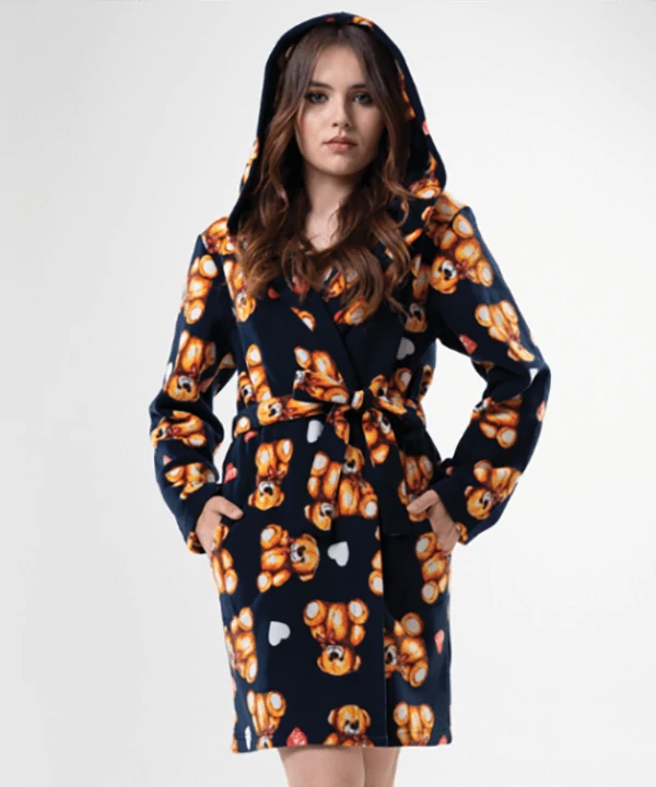 Puha, meleg polár anyagból készült női köntös. Kellemes érzés belebújni. Közepesen vastag, könnyen száradó, formatartó anyagú. Méretezésre figyelj! mellbőség:108 cm, hossz:91 cm, ujj:59 cm.