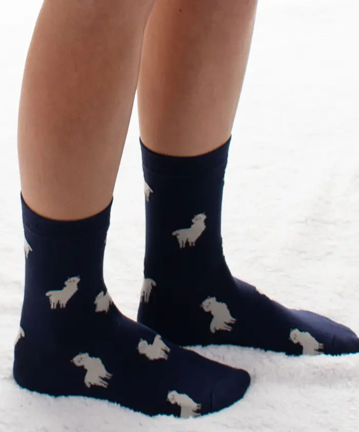 Cuki bébi láma mintás pamut zokni. Egész napos kényelmet és vidámságot biztosít. Anyaga:finoman fésült pamut