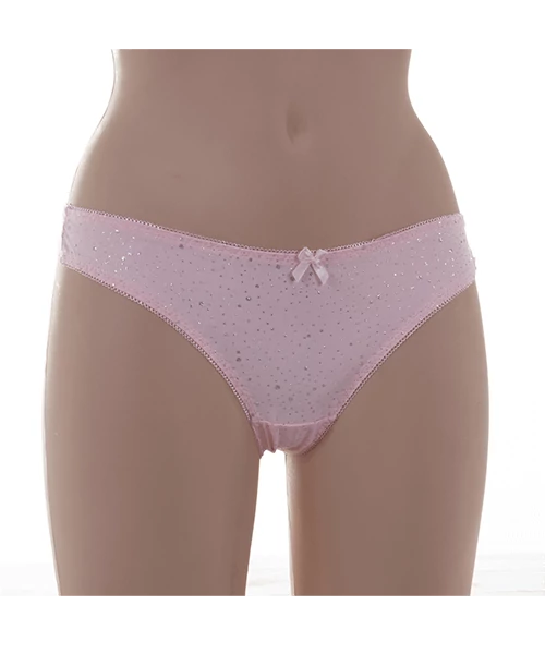 Lemila rózsaszín csodaszép puha csipkés hátul, elől csillogó microfibra anyagú brazil fazonú női bugyi. mérete lefektetve, nem nyújtva: szélesség:62 cm, magasság:19 cm kb.5-10 cm-t enged