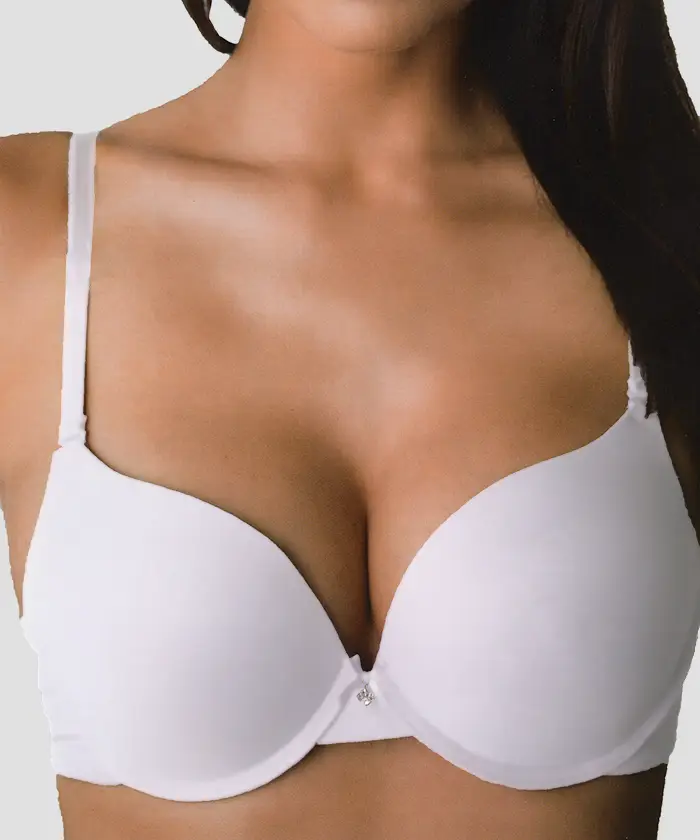 Lemila Push Up melltartó. Akár 2 mérettel nagyobb dekoltázst varázsol. Mikroszálas, sima felületű kosár, varrás nélküli levehető, állítható pánttal. Kettős horogkapcsa 3 fokozatban állítható.