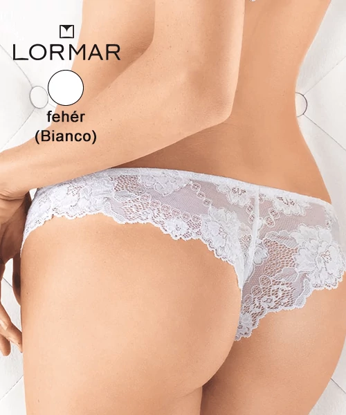 Lormar puha hófehér csipkés anyagú brazil fazonú női alsó. szélesség:62-70 cm, magasság:19 cm I. osztályú olasz termék Ajánljuk hozzá a Prestige melltartót