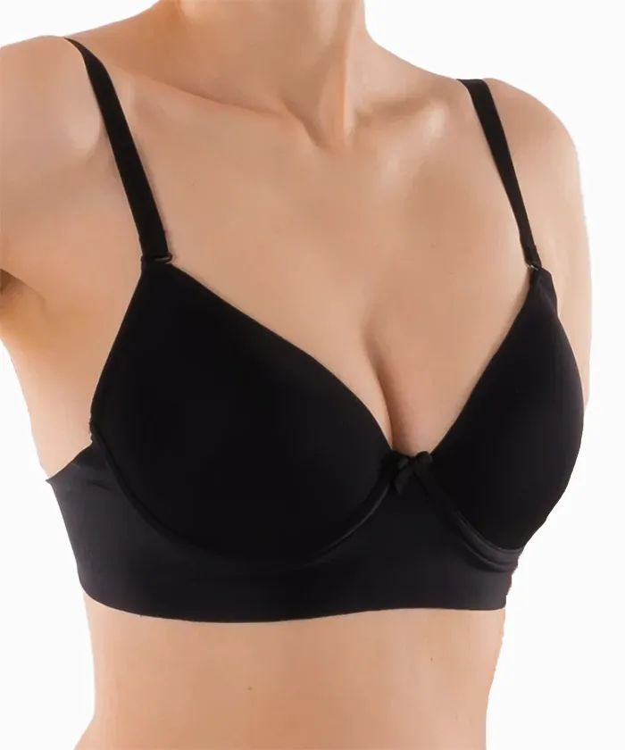 Lemila merevítős, vékony szivacsos melltartó. Hátán mélyen kivágott, állítható, vékony pánttal. Mikroszálas anyagú. Ideális nyitott hátú ruhához!