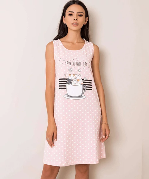 Cuki cica imádóknak! Csokor macska nyomott mintás pamut női hálóing. Akár pólóruhaként is szuper választás. Rózsaszín alapon fehér festett pöttyös. Vékony, jól engedő pamut anyagból. Fazona A vonalú. mell:86 cm, hossz:92 cm, 10 cm-t enged