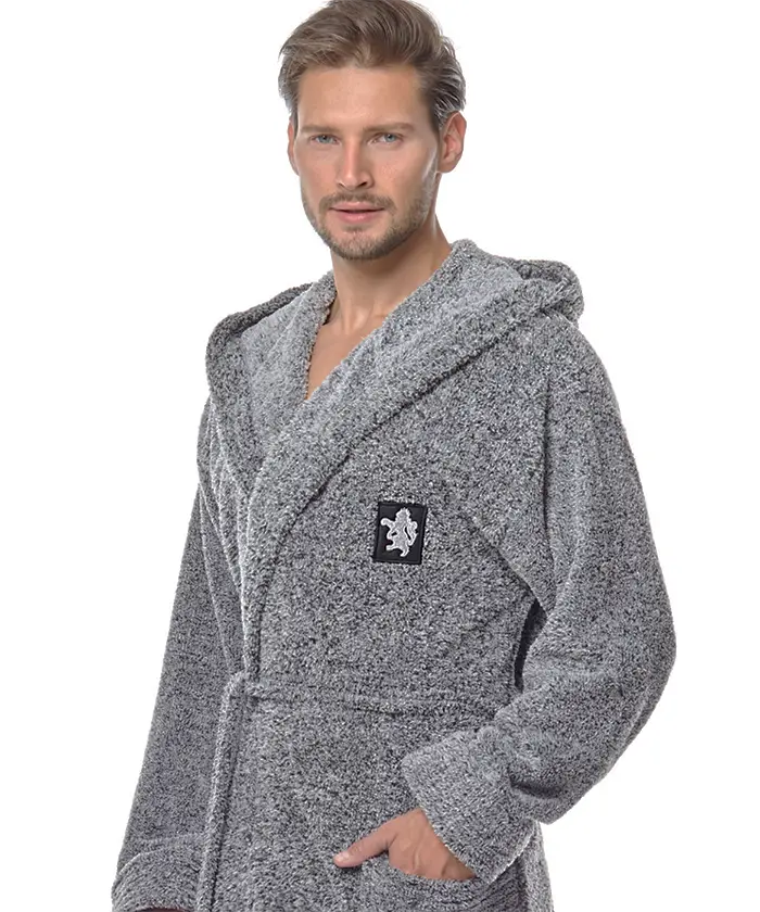 Kellemesen puha, vastag welsoft, kapucnis, cirkás férfi fürdőköpeny, mellrésznél elegáns hímzéssel. Megérdemelt pihenés a férfiaknak is jár! Ha fázós a párod, akkor bújtasd ebbe a köntösbe! Színárnyalat eltérés előfordulhat! Minőségi Európai termék. köntös mellbősége:118 cm, hossza:111 cm,