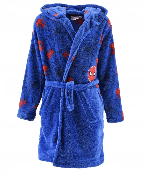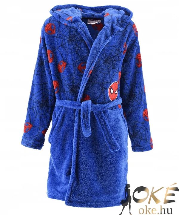 Új model! Marvel Pókember/Spiderman plüss hatású, pihe puha wellsoft anyagú, hímzett kapucnis, hímzett és nyomott mintás gyermek köntös, gumírozott derékrésszel, bevarrt övvel, 2 zsebbel. mellbőség:64 cm, hossz:54 cm, ujj:31 cm,