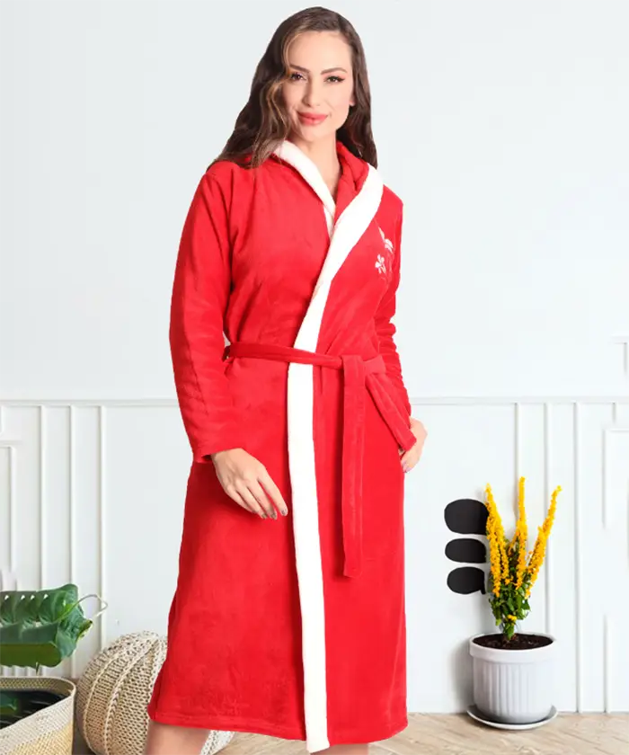 Hosszú fazonú, vastag, pihe puha wellsoft meleg női fürdőköpeny, mellrészén virág hímzéssel, 2 zsebbel. I. osztályú termék. köntös mellbősége:102 cm, hossza:116 cm,