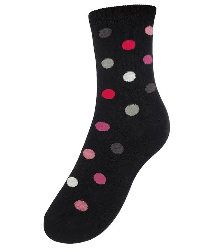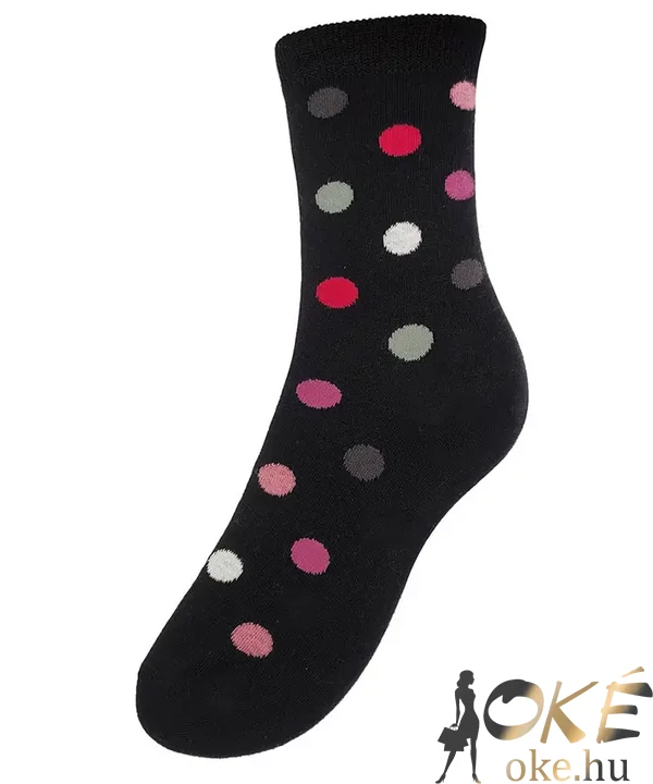 Cuki pöttyös pamut zokni. Formatartó, rugalmas, jó nedvszívó, légáteresztő. Anyaga:finoman fésült 95% pamut anyag. I. oszt. Európai termék