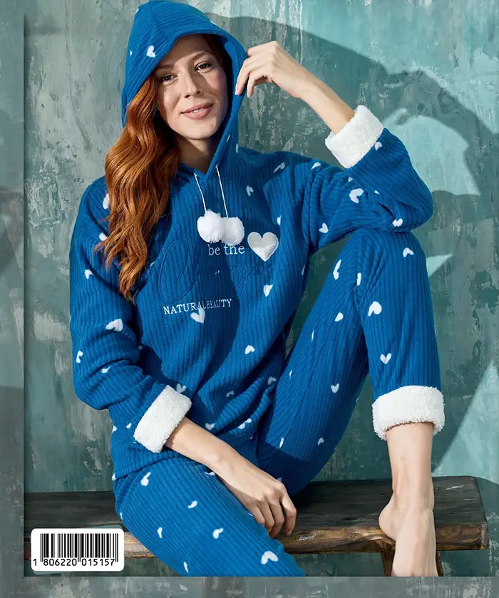 Cuki szivecskés polár női pizsama. Felsőrésze hímzéssel, körgumis, mintás nacival. mellbőség:104-108 cm, hossza:64 cm, naci derék:70-80 cm, belső hossza:73 cm