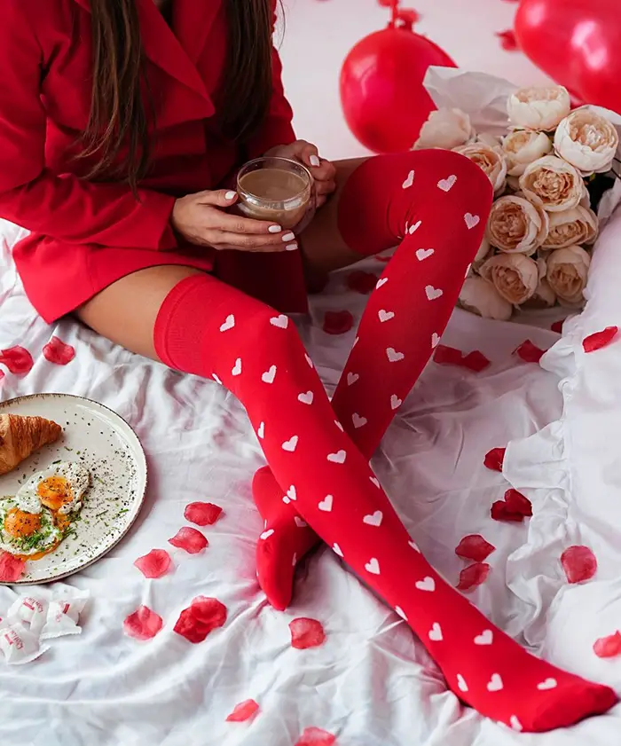 Szivecskés pamut combzokni piros