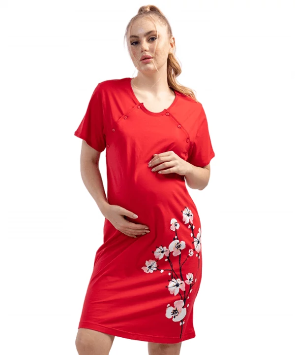 Vékony pamutból készült szoptatós kismama hálóing pasztel virág mintával. Mellrész két oldalán legombolható, ami segítséget nyújt a kismamának a baba etetése során. hálóing mellbősége:100-106 cm, hossza:103 cm, 100% finom pamut