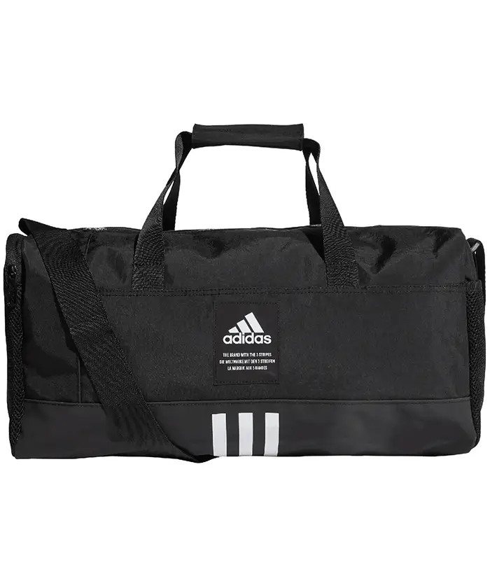 Adidas 4ATHLTS Duffel M utazótáska, sporttáska suliba, sportoláshoz. Egy nagy fiókos belül akasztókkal, 2 külső hálós, cipzáras zseb. Kopásálló, vízhatlan alj. Ez a modell tartós, újrahasznosított, sima szövésű poliészterből készült. 58x 28x 28 cm, 39 literes