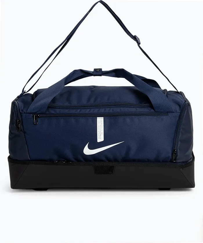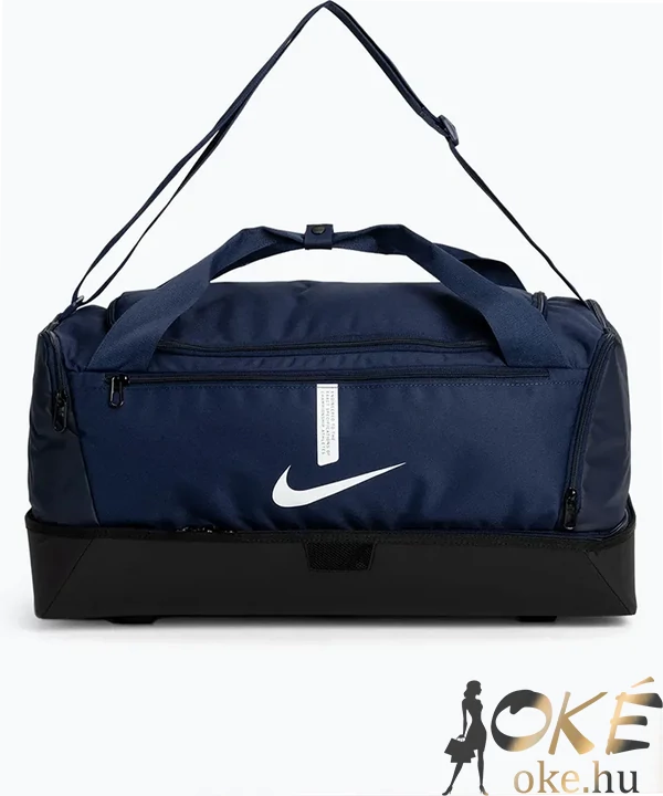Nike Academy Team masszív 37 literes sötétkék utazótáska. 1 nagy fiók 1 cippes zsebbel, alatta kopásálló, merevített vízhatlan cippes alj a vízes cuccoknak. A speciális tárolórekeszben felszerelésedet szárazon és biztonságban tudhatod. Oldalt 2 cippes zseb, ami vízhatlan. méret:53 x 30 x 28 cm, A termék eredetisége garantált.